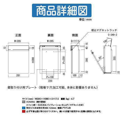 壁付け・壁掛けポストの構造・サイズ