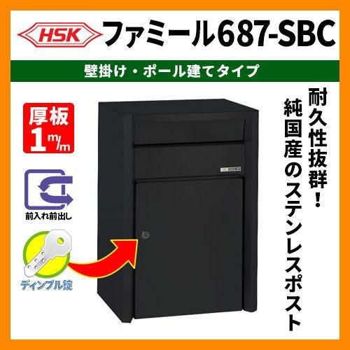 ハッピー金属工業 壁掛け式・ポール建て式ポスト ファミール687-SBC ディンプル錠