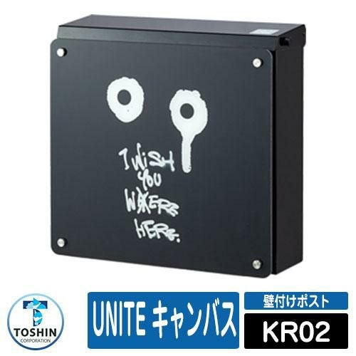 郵便ポスト 郵便受け 壁付けポスト UNITE キャンバス ポスト本体色:ブラック カラーパネル色:錆茶 装飾パネル:KR02