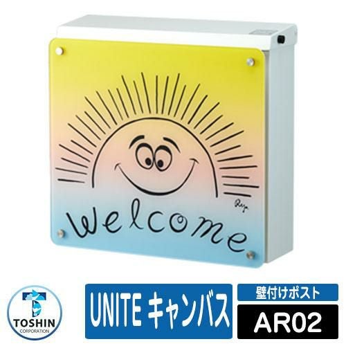 郵便ポスト 郵便受け 壁付けポスト UNITE キャンバス ポスト本体色:ホワイト カラーパネル色:オフホワイト 装飾パネル:AR02