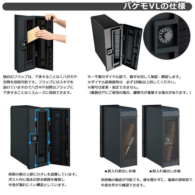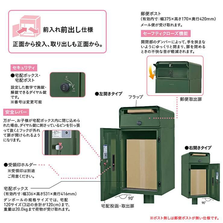また「前入れ後出し」などのポストは、取出し部が住宅側にあり、ポストの前側に回り込んで投函物を取り出す必要がないので、設置場所に余裕がある方は動線に合わせた仕様のポストを選ぶと非常に便利です。 -