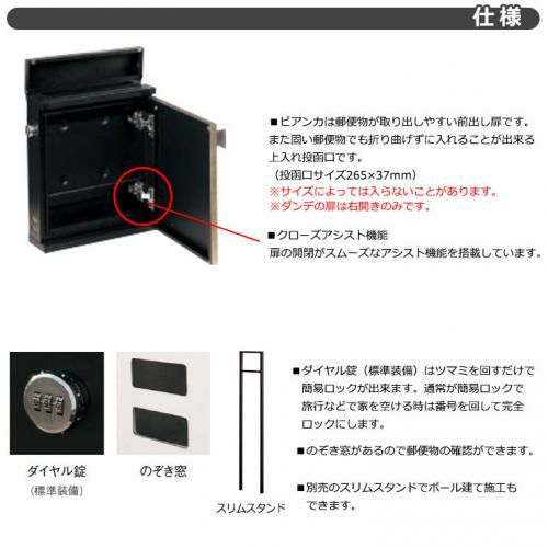 シンプルポストユニット 1型 照明なし本体 T13型ポスト(簡易錠) セット 上入れ前出し