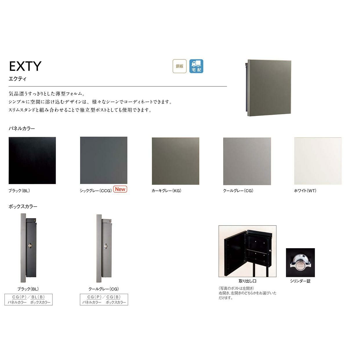 住宅をおしゃれに飾りたい方におすすめの郵便ポスト!TOYO EXTY(エクティ) ポストは、シンプルなのに洗練されたスタイリッシュなデザインが魅力のスリムな郵便ポストです。シンプルなのにハイセンスな高級感漂う容姿は一度見ていただければ納得していただけること間違いなし!