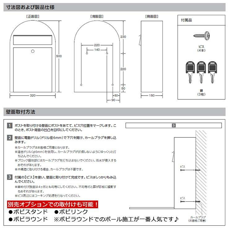 • ポール式ポストの構造・サイズ