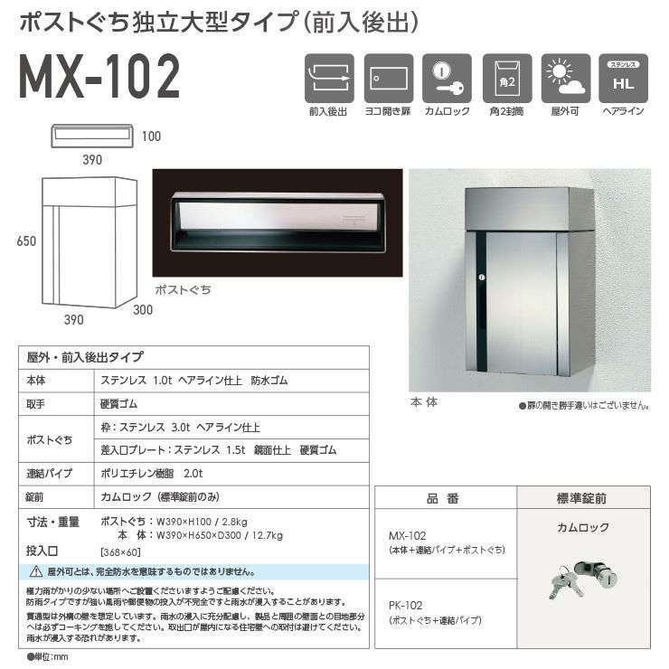 シンプルポストユニット 1型 照明なし本体 T13型ポスト(簡易錠) セット 上入れ前出し