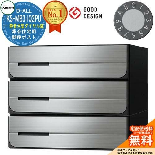 郵便ポスト 集合住宅用ポスト D-ALL KS-MB3102PU-3L 静音大型ダイヤル錠 3戸用
