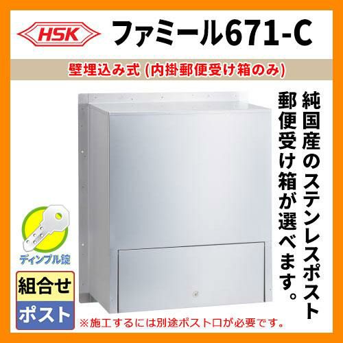 ハッピー金属工業 壁埋込み式(内掛郵便受け箱のみ)ファミール671-C