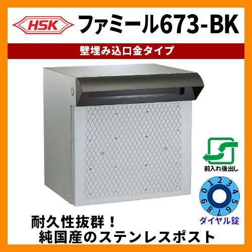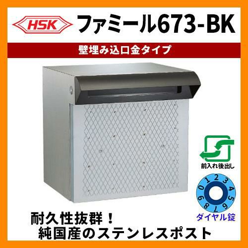 ハッピー金属工業 壁埋込み式ポスト 2Bサイズ ファミール673-BK ダイヤル錠