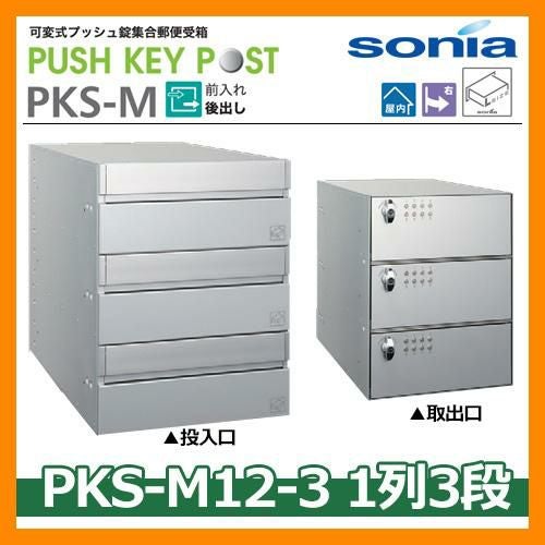 集合住宅用ポスト 可変式プッシュ錠集合郵便受箱 PKS-M12-3 1列3段(3戸用)