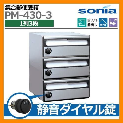 集合住宅用ポスト 集合郵便箱 PM-430-3 1列3段 静音ダイヤル錠タイプ