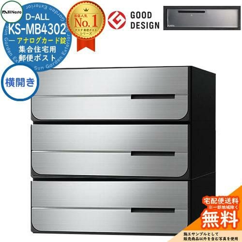 郵便ポスト 集合住宅用ポスト D-ALL KS-MB4302PY-3K-□ アナログカード錠 3戸用 横開き