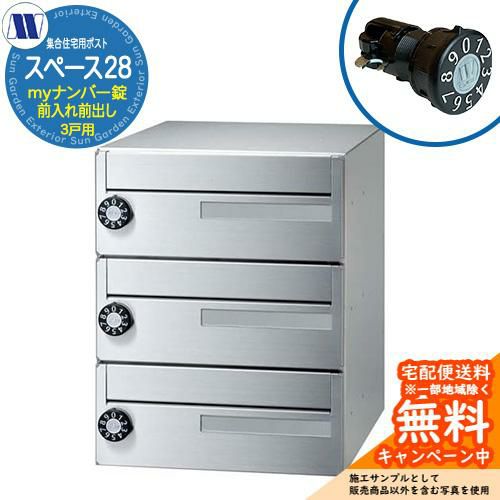 郵便ポスト 集合住宅用ポストスペース28 myナンバー錠 前入れ前出し 3戸用