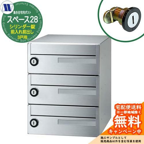 集合住宅用ポスト スペース28 シリンダー錠 前入れ前出し 3戸用 横開き