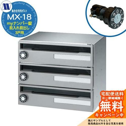 郵便ポスト 集合住宅用ポストMX-18 myナンバー錠 前入れ前出し 3戸用