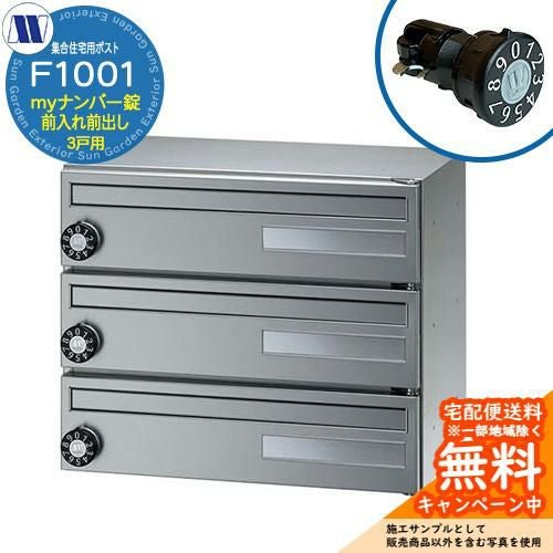 郵便ポスト 集合住宅用ポストF1001 花がすみ myナンバー錠 前入れ前出し 3戸用
