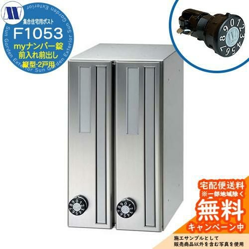 郵便ポスト 集合住宅用ポストF1053 98君 myナンバー錠 前入れ前出し 縦型 2戸用