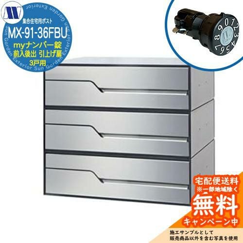 郵便ポスト 集合住宅用ポスト MX-91-36FBU myナンバー錠 前入れ後出し 3戸用