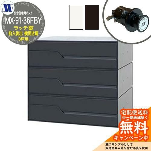 集合住宅用ポスト MX-91-36FBY ラッチロック 前入れ後出し 3戸用 横開き扉
