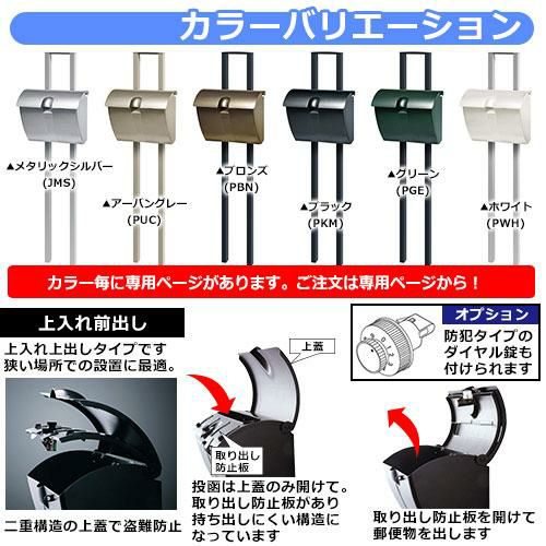 シンプルポストユニット 1型 照明なし本体 T13型ポスト(簡易錠) セット 上入れ前出し