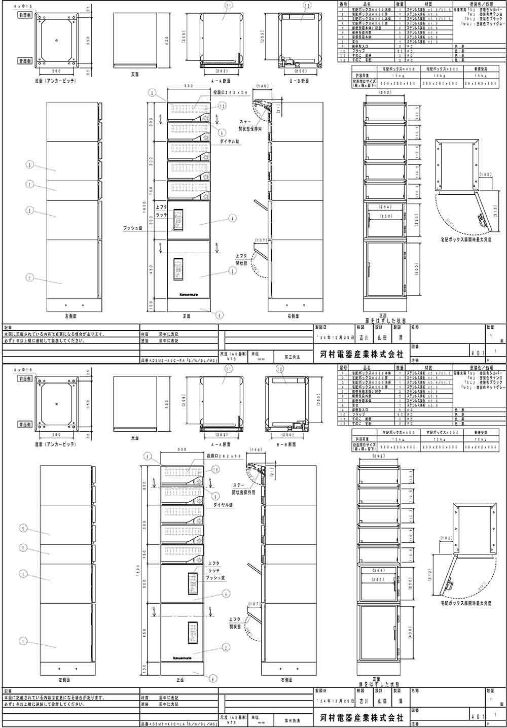 宅配ボックス コンボ ミドルタイプ本体 後出しFR
