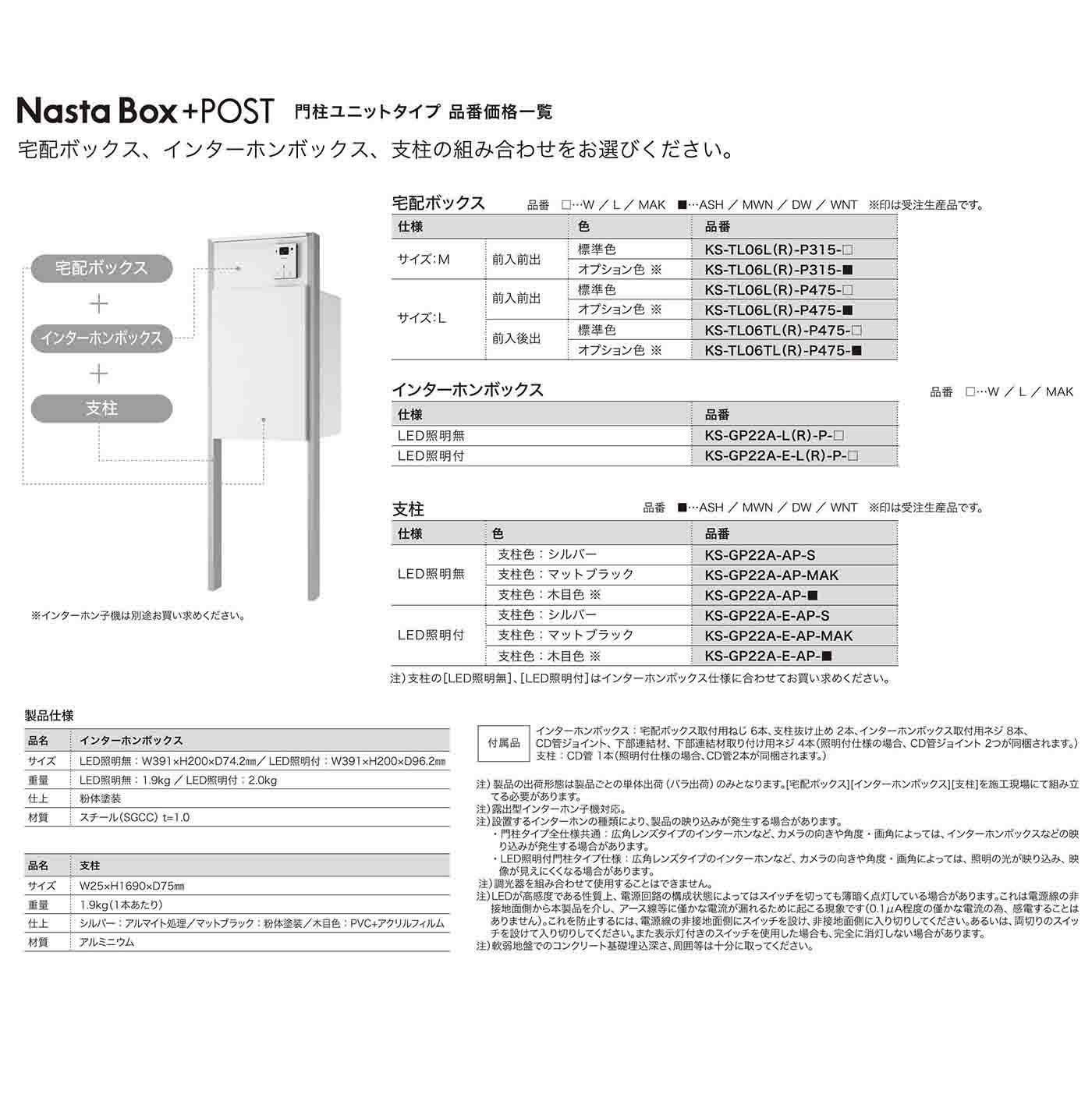 シンプルポストユニット 1型 照明なし本体 T13型ポスト(簡易錠) セット 上入れ前出し