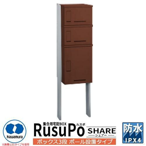 集合住宅用 宅配ボックス ルスポ シェアー KD3-50PBR H600+H300×2ボックス3段ポール設置タイプ 奥行500mm イメージ:ブラウン