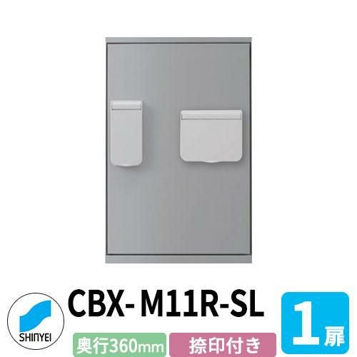 SK-CBX-M11R-SL 捺印付き シルバー 防滴 1枚扉 奥行き360mm 電池式テンキータイプ スチール製 半屋外用