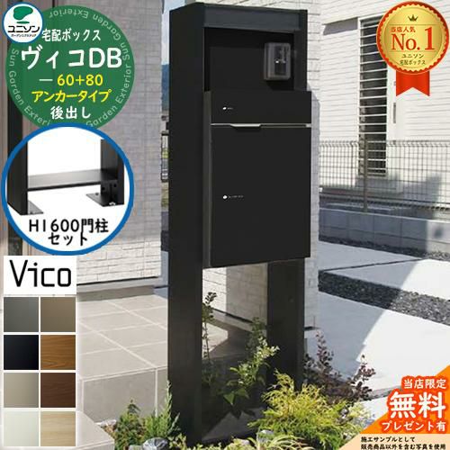 ヴィコ DB 宅配ボックス 大容量 一戸建て用 ヴィコDB 60+80 ポスト有り+H1600 門柱スタンドセット アンカータイプ 組み合わせ商品 8カラー 後出し