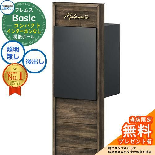 宅配ボックス 一戸建て用 大容量 フレムス Basic 機能ポール(木調色)+宅配ポスト インターホンなし 前入れ後出し コンパクト 意匠パネル付きタイプ