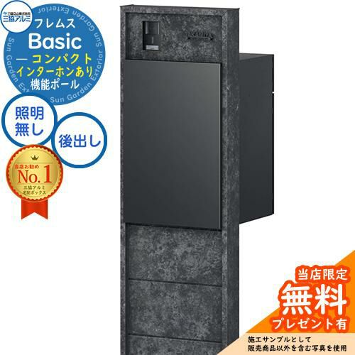宅配ボックス 一戸建て用 大容量 フレムス Basic 機能ポール(ボード色)+宅配ポスト インターホンあり 前入れ後出し コンパクト 意匠パネル付きタイプ