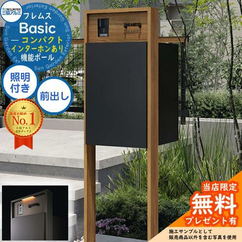 ■フレムス Basic 機能ポール(木調色)+宅配ポスト インターホンあり 前入れ前出し コンパクト
