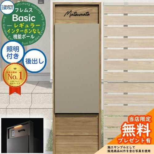 宅配ボックス 一戸建て用 大容量 フレムス Basic 機能ポール(木調色)+宅配ポスト インターホンなし 前入れ後出し レギュラー 意匠パネル付きタイプ