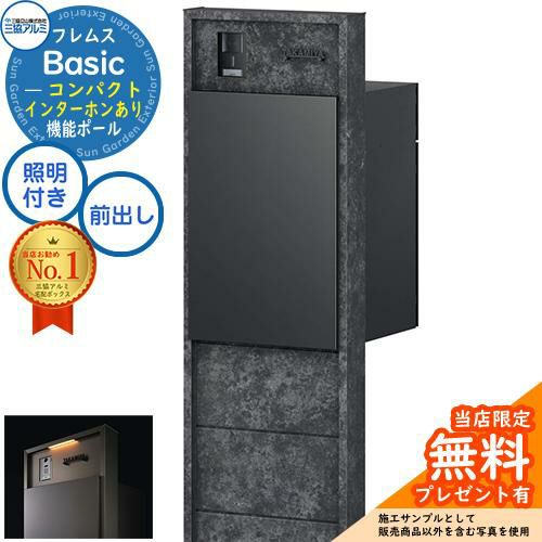■フレムス Basic 機能ポール(ボード色)+宅配ポスト インターホンあり 前入れ前出し コンパクト 意匠パネル付きタイプ