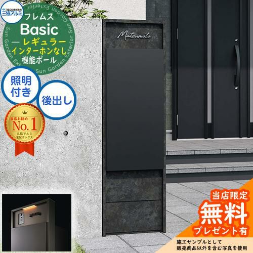 ■フレムス Basic 機能ポール(ボード色)+宅配ポスト インターホンなし 前入れ後出し レギュラー 意匠パネル付きタイプ