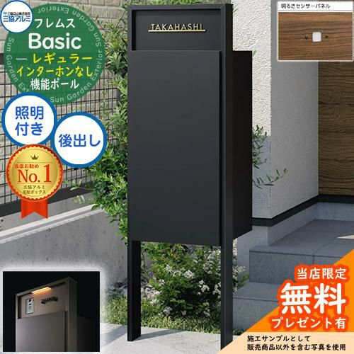 宅配ボックス 一戸建て用 大容量 フレムス Basic 機能ポール(形材色)+宅配ポスト インターホンなし 前入れ後出し レギュラー