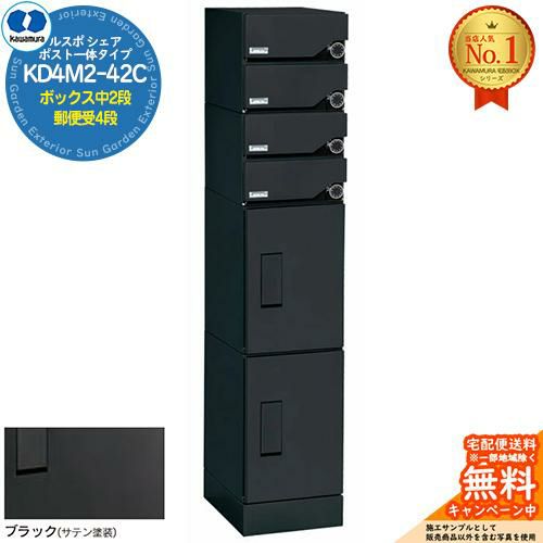 宅配ボックス ルスポ シェア RUSUPO SHARE ポスト一体タイプ ボックス中2段+郵便受4段 KD4M2-42C-□ ブラック(BL)