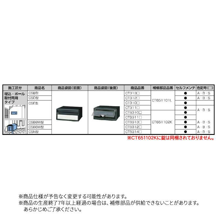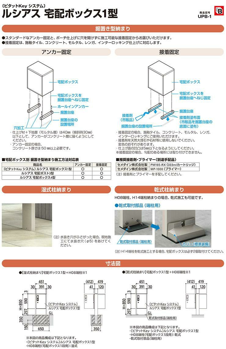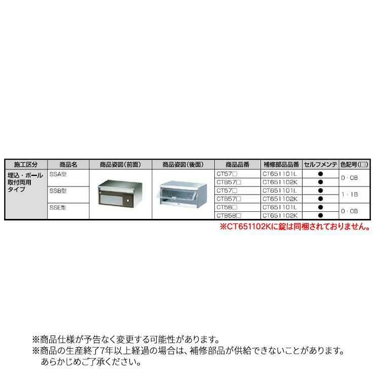 シンプルポストユニット 1型 照明なし本体 T13型ポスト(簡易錠) セット 上入れ前出し