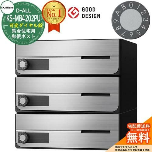 D-ALL 集合住宅用ポスト KS-MB4202PU-3LK 可変ダイヤル錠 前入れ前出し 3戸用