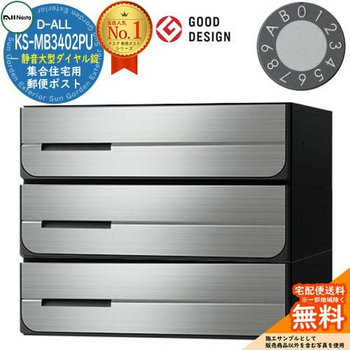 D-ALL 集合住宅用ポスト KS-MB3402PU-3L-□ 静音大型ダイヤル錠 前入れ後出し 3戸用 両側防滴タイプ