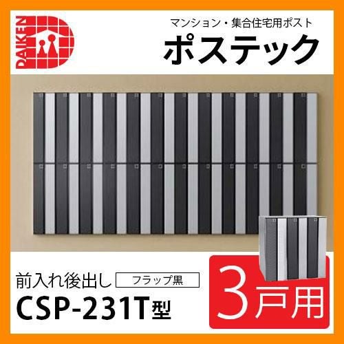 集合住宅用ポスト CSP-231T-3DK ポステック 3戸用 静音ダイヤル錠 縦型 フラップ黒 前入れ後出し
