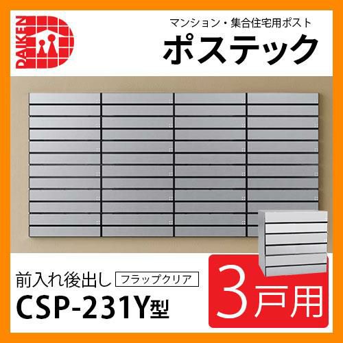 集合住宅用ポスト CSP-231Y-3D ポステック 3戸用 静音ダイヤル錠 横型 フラップクリア 前入れ後出し