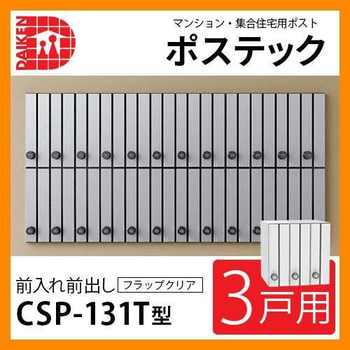 集合住宅用ポスト CSP-131T-3D ポステック 3戸用 静音ダイヤル錠 縦型 フラップクリア 前入れ前出し
