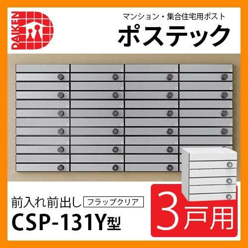 集合住宅用ポスト CSP-131Y-3D ポステック 3戸用 静音ダイヤル錠 横型 フラップクリア 前入れ前出し