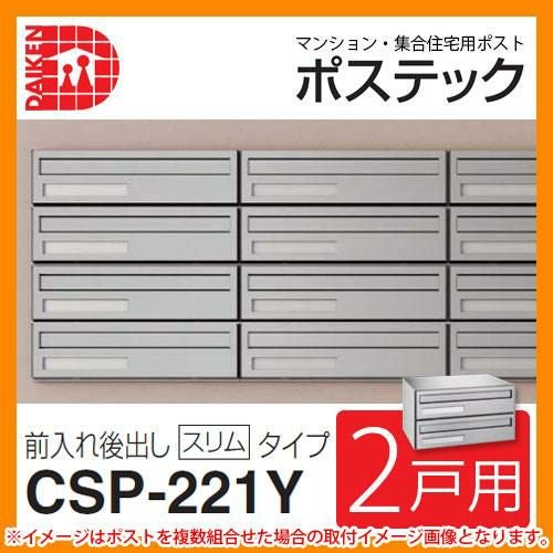 集合住宅用ポスト CSP-221Y-2D ポステック 2戸用 静音ダイヤル錠 横型 前入れ後出し