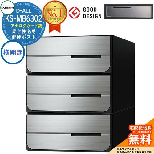郵便ポスト 集合住宅用ポスト D-ALL KS-MB6302PY-3K-□ アナログカード錠 3戸用 横開き
