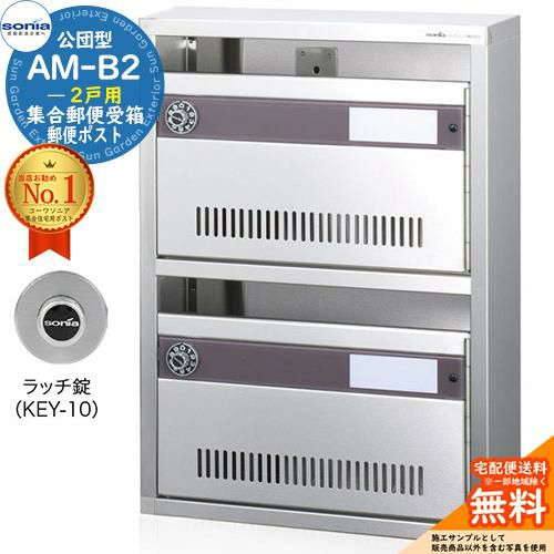 ポスト 集合住宅 集合郵便受箱 AM-B2 2戸用 ラッチ錠 (KEY-10) 受注生産:(1列2段)