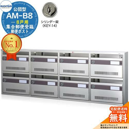 ポスト 集合住宅 集合郵便受箱 AM-B8 8戸用 シリンダー錠 (KEY-14)