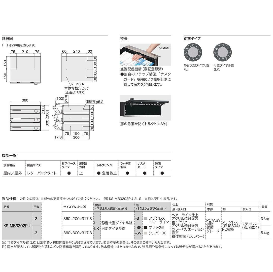 シンプルポストユニット 1型 照明なし本体 T13型ポスト(簡易錠) セット 上入れ前出し