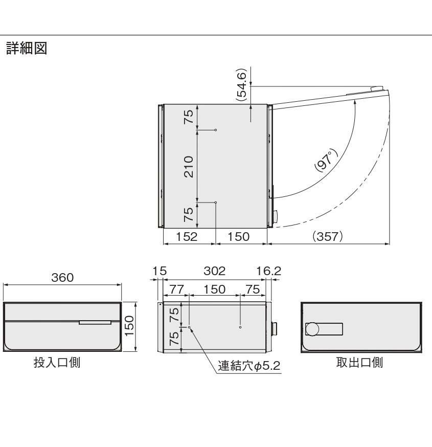 集合住宅用ポストには投函・取出しを行う構造として「前入れ前出し」「前入れ後出し」「前入れ横出し」「上入れ上出し」「上入れ前出し」「上入れ後出し」など、多くのバリエーションがありますが、投函物を取り出す際どこから取り出すのかにより、構造が大きく変化します。ポストの設置場所に余裕がある方は問題ありませんが、狭小地では「前入れ前出し」や「上入れ前出し」など、前面部で操作が完結するポストが一番スリムでおすすめです。