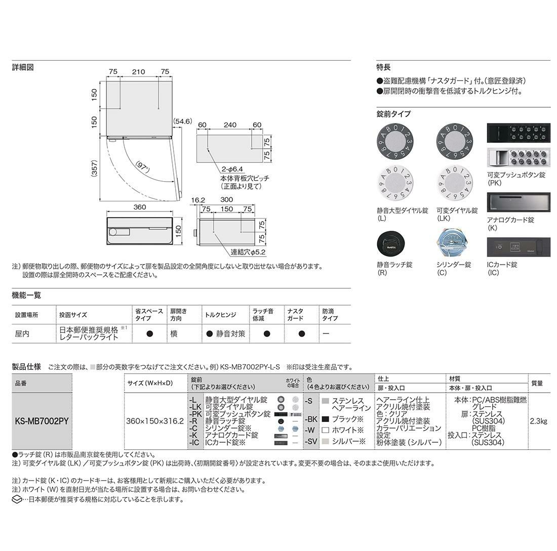 D-ALL 集合住宅用ポスト KS-MB6402PU-3R-□ 静音ラッチ錠 前入れ後出し 3戸用 上開き 両側防滴タイプ